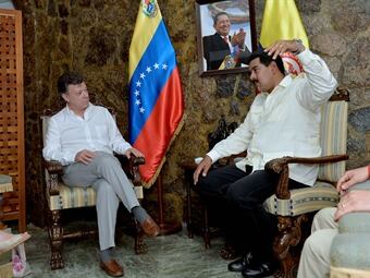 “Hoy vinimos a poner sobre la mesa la verdad de Venezuela y de Colombia una vez más y a hablar con franqueza con el presidente Santos, a trabajar por la felicidad de nuestros pueblos. Así que estoy muy feliz de estar aquí”, expresó Maduro