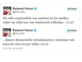 Tras la información publicada el pasado domingo por el noticiero Noticias Uno en la que se afirmaba que Falcao García tenía 29 años en lugar de 27, el colombiano se pronunció a través de su cuenta de twitter
