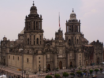 Ubicada en el Zócalo de la capital mexicana, la catedral aúna románico, gótico, elementos barrocos y hasta neoclásicos, los del valenciano Manuel Tolsá, quien llegó a comienzos del siglo XIX y como no le gustaba derribó una cúpula, una torre y una fachada para volver a construirlas a su estilo