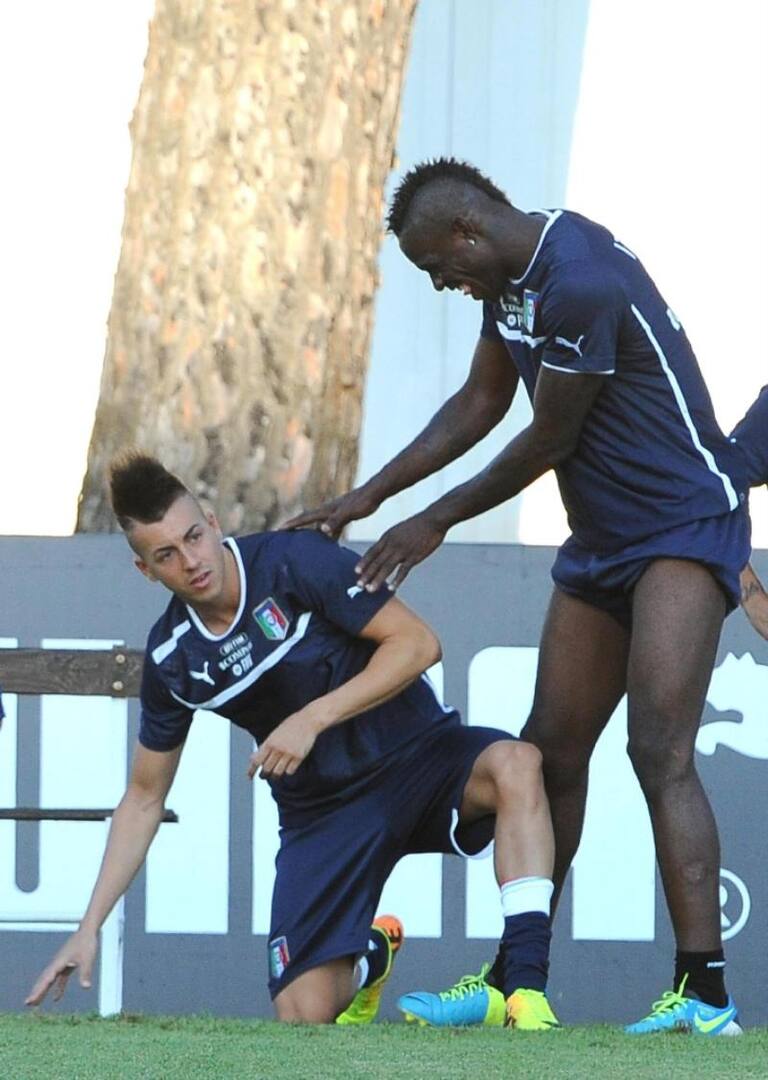 Balotelli y El Shaarawy durante el entrenameinto.