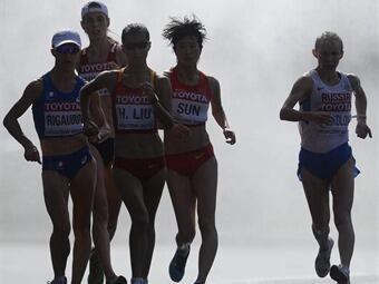20 km marcha, mujeres .1. Elena LASHMANOVA (RUS) 1h27:08 .2. Anisya KIRDYAPKINA (RUS) 1h27:11 .3. Hong LIU (CHN) 1h28:10 .4. Huanhuan SUN (CHN) 1h28:32 .5. Elisa RIGAUDO (ITA) 1h28:41 .6. Beatriz PASCUAL (ESP) 1h29:00 .7. Aneska DRAHOTOVÁ (CZE) 1h29:05 .8. Ana CABECINHA (POR) 1h29:17 .9. Julia TAKÁCS (ESP) 1h29:25 14. Mayra HERRERA (GUA) 1h30:59 18. Lorena LUACES (ESP) 1h31:43 22. Lorena ARENAS (COL) 1h32:25 25. Yanelli CABALLERO (MEX) 1h32:37 28. Paola PÉREZ (ECU) 1h33:03 33. Sandra GALVIS (COL) 1h33:49 46. Wendy CORNEJO (BOL) 1h36:06 50. Ángela CASTRO (BOL) 1h36:33 52. Mónica EQUIHUA (MEX) 1h36:46 + Mirna ORTIZ (GUA) Descalificada + Lizbeth SILVA (MEX) Descalificada