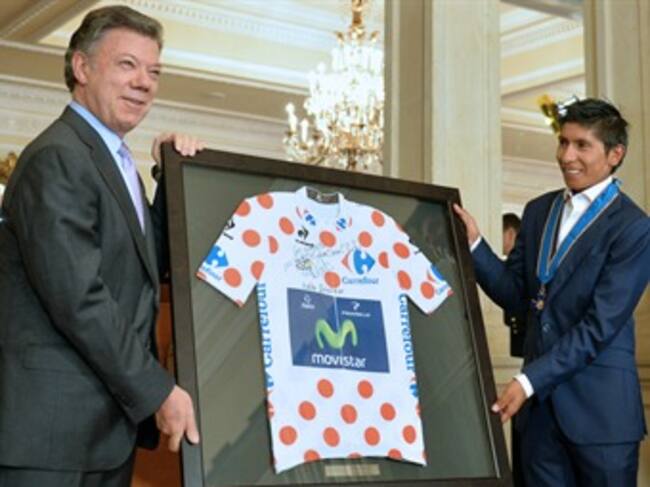 Nairo Quintana, ciclista colombiano del equipo Movistar, fue recibido por una multitud entusiasmada en Bogotá que lo ovacionó tras sus logros en el Tour de Francia y la Vuelta a Burgos. Quintana, que terminó segundo en Francia, líder de montaña y campeón de los jóvenes, recorrió la ciudad en una caravana que lo condujo a la Casa de Nariño donde fue homenajeado por el Presidente de la República, Juan Manuel Santos, quién le entregó la Cruz de Boyacá