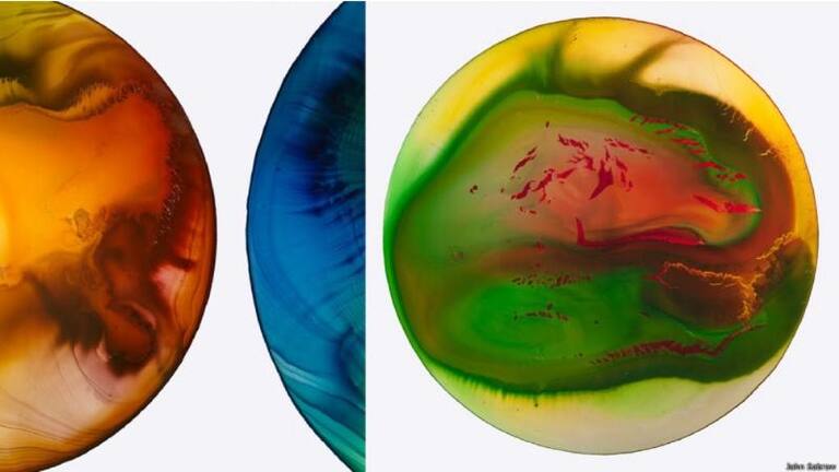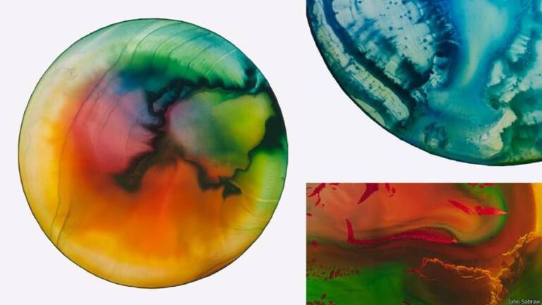 • Sabraw define su serie de pinturas como “exploraciones abstractas sobre los fenómenos naturales, el ecosistema de la Tierra como un todo y nuestro rol en él”. En la imagen, Chroma S1 5, de John Sabraw.