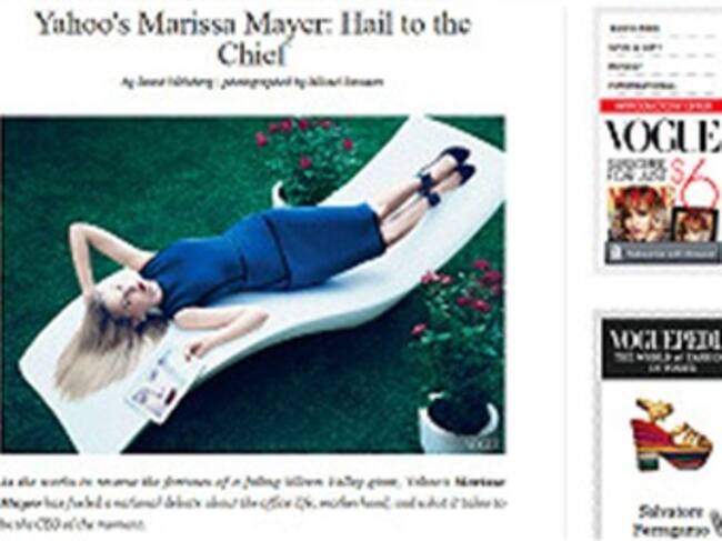 Una imagen de la presidenta ejecutiva de Yahoo, Marissa Mayer, publicada en la revista Vogue causó controversia las redes sociales.