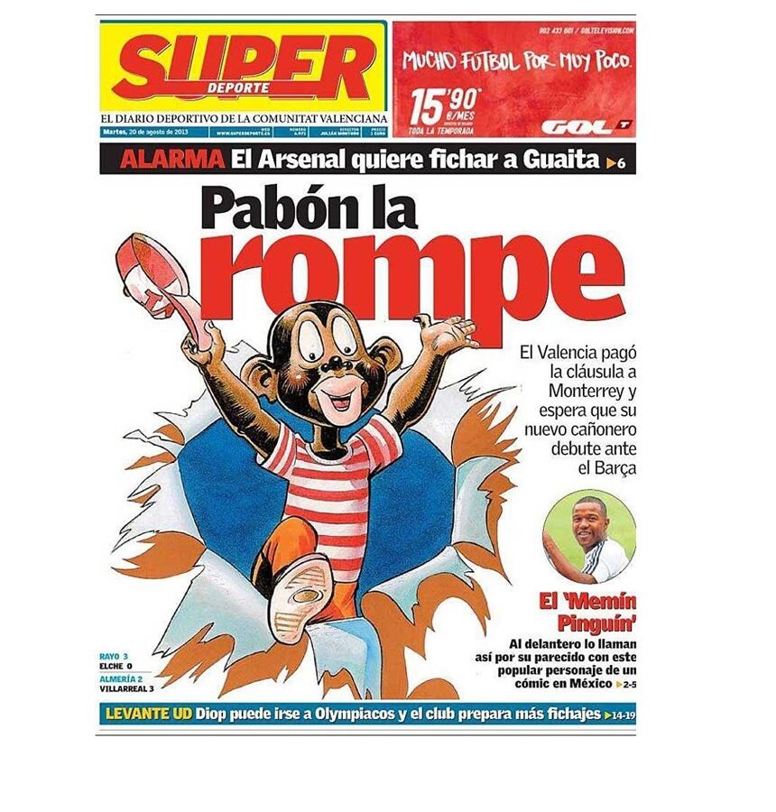 El diario 'Super Deporte' destaca con humor gráfico al nuevo refuerzo de Valencia, por el que pagó 10 millones de dólares y que tendrá por las próximas cuatro temporadas.