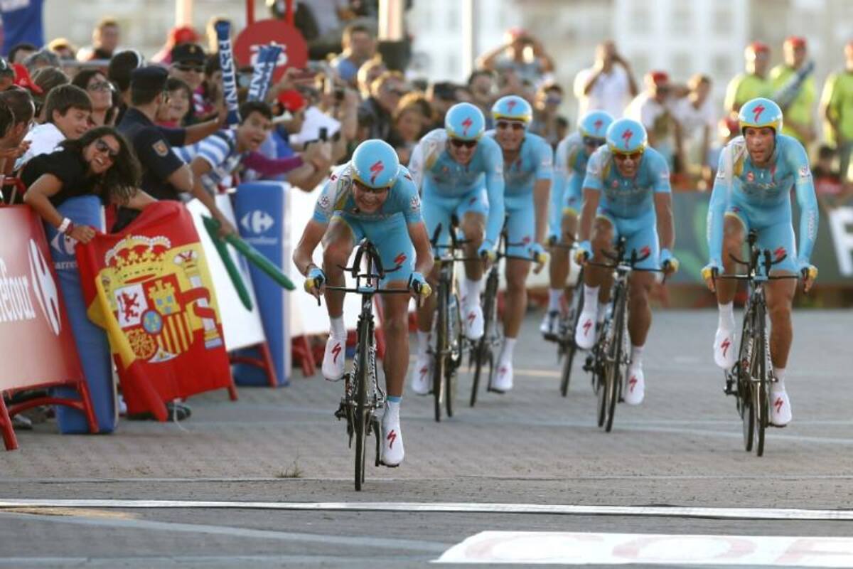 El equipo Astana, ganador de la crono por equipos, en acción.