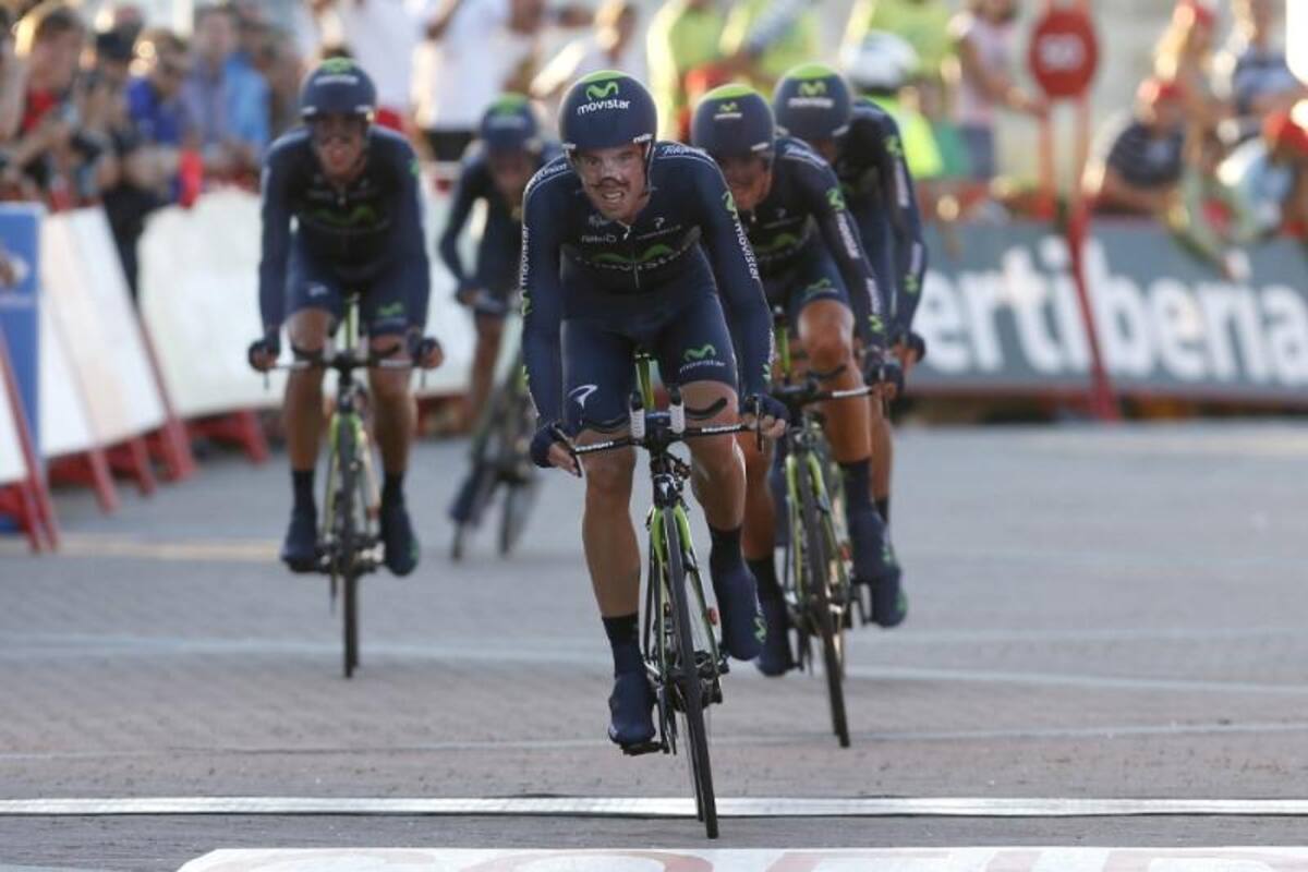 El equipo Movistar durante la primera etapa de la Vuelta 2013.