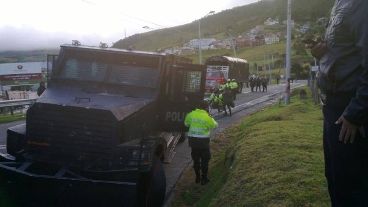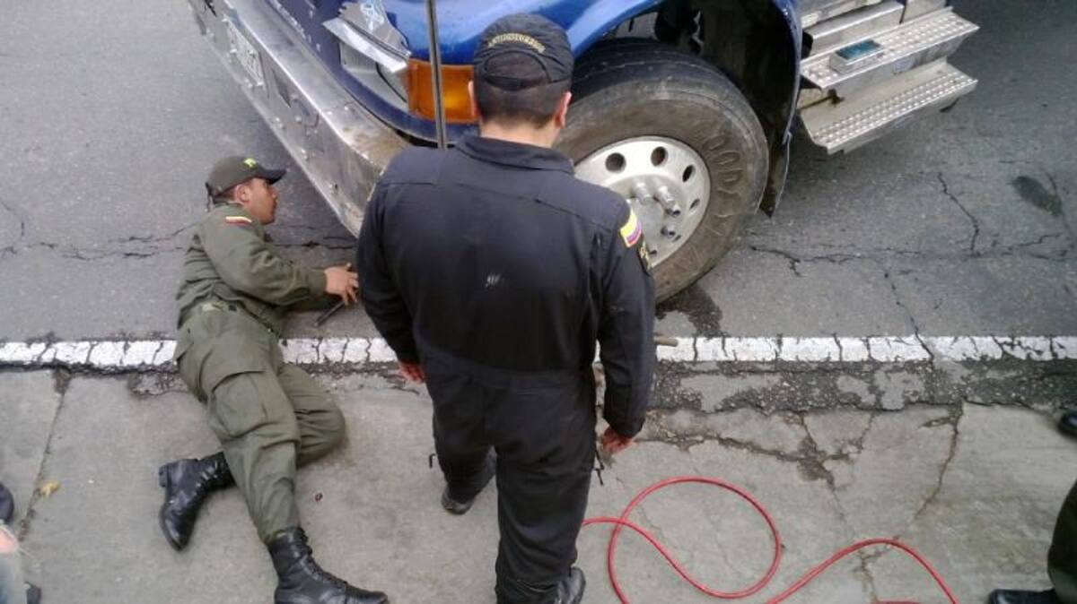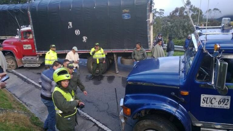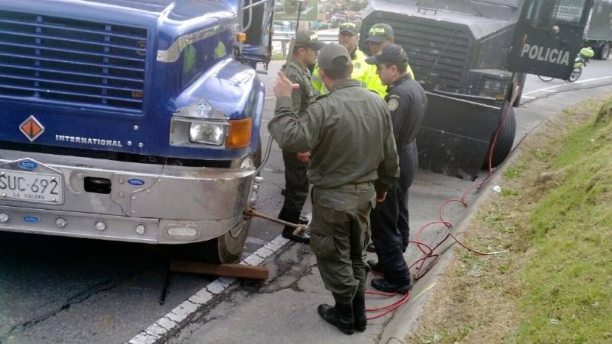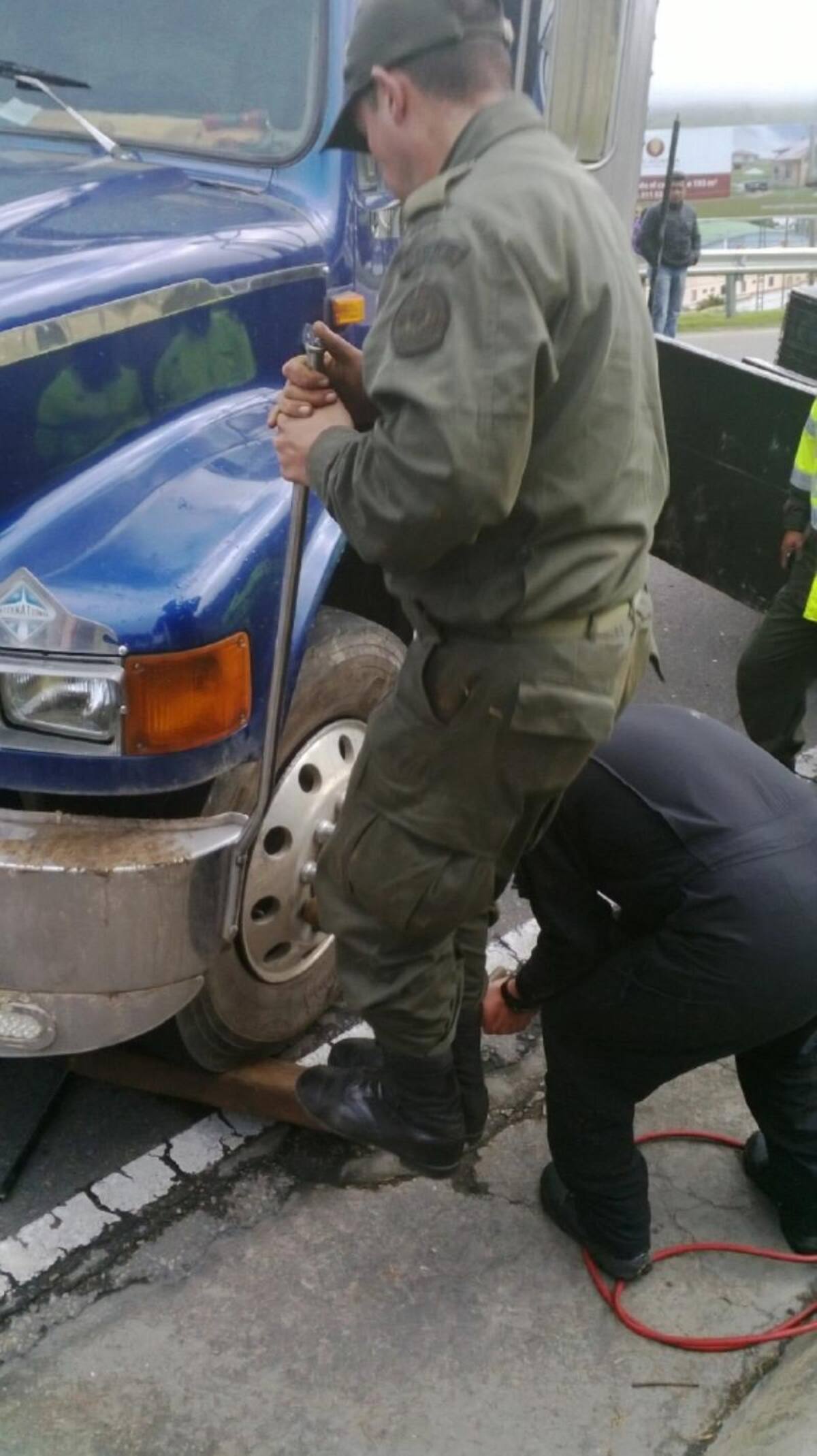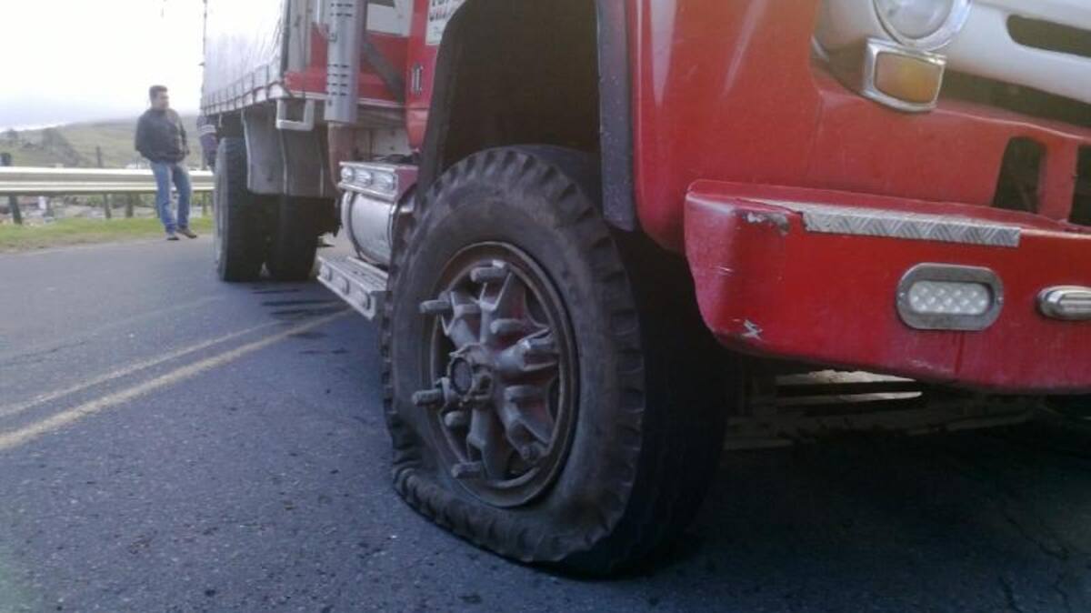La Policía ayuda a despinchar los camiones barados en la vía.