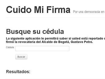 Esta página que se conoció a inicio de semana, permite que digitando el número de identificación de cualquier persona se pueda conocer si aparece en la base de datos de la Registraduría Distrital, como una de las más de 300.000 personas que firmaron para convocar a elecciones que determinen si se revoca o no el mandato del alcalde Gustavo Petro