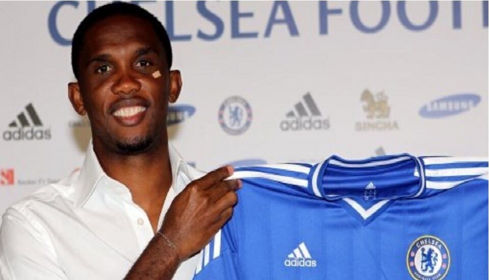 Samuel Eto'o posa con la camiseta de Chelsea, su nuevo equipo