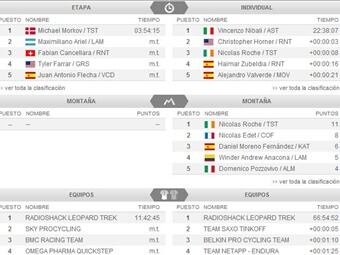 En una nueva llegada masiva, la clasificación general no sufrió cambios en sus primeras posiciones. Rigoberto Urán continúa como el mejor de los colombianos