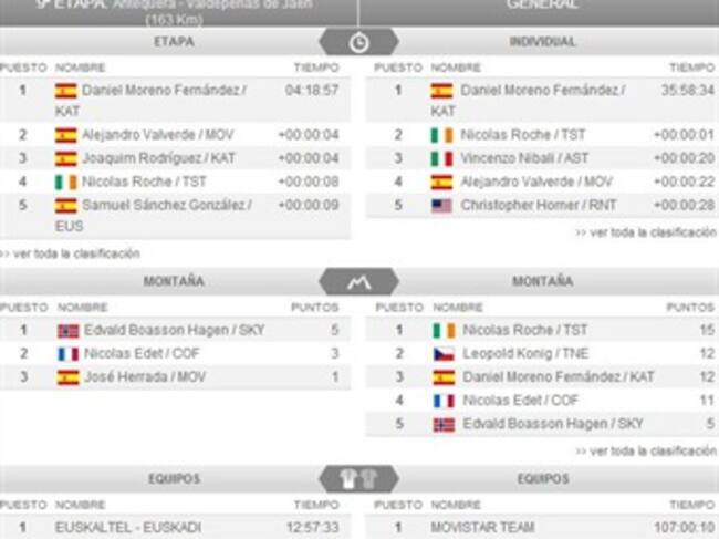 En la novena etapa, Sergio Henao siguió recuperando posiciones. Rigoberto Urán cayó una casilla y el nuevo líder es el español Dani Moreno.