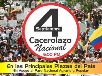 Mañana cacerolazo nacional en paz, sin filtración de violencia y sin vandalismo!! #CacerolazoPorEl movimiento Marcha Patriótica anunció su respaldo al cacerolazo y pidió en twitter respaldar la propuesta
