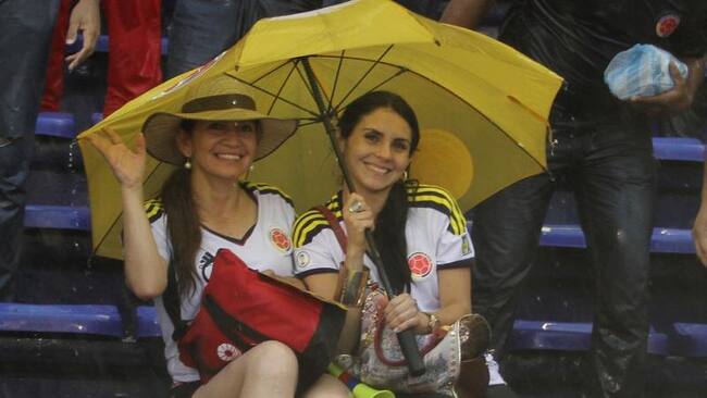 Los aficionados que acompañaron a Colombia en el Metropolitano no perdieron el entusiasmo ni siquiera con el aguacero que cayó en Barranquilla.