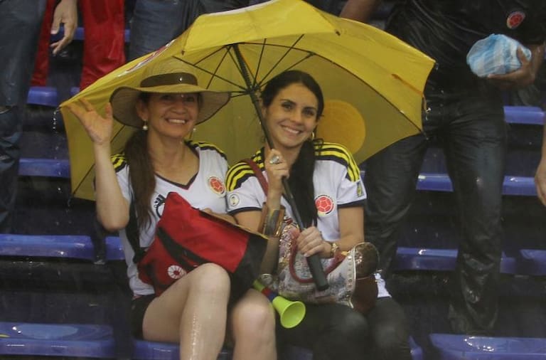 • Los aficionados que acompañaron a Colombia en el Metropolitano no perdieron el entusiasmo ni siquiera con el aguacero que cayó en Barranquilla.
