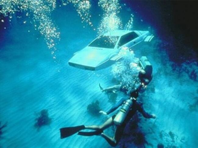 Tras caer el coche al mar desde un muelle, la escena del filme de 1977 muestra cómo el vehículo se convierte en un coche submarino, aunque en realidad son dos distintos