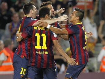 - Ficha del partido:3. FC Barcelona: Valdés; Alves, Mascherano, Piqué, Alba (Adriano, min.15); Xavi, Busquets, Iniesta (Cesc, min.73); Neymar, Messi y Tello (Alexis, min.62)