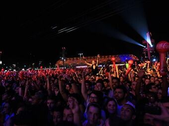El "show", de poco más de una hora, dejó con la miel en los labios a un buen número de seguidores debido al menor espacio frente al Escenario Sunset, el segundo tablado del festival, donde tocó la banda californiana por decisión de la organización, no exenta de polémica