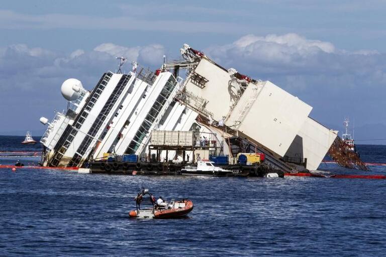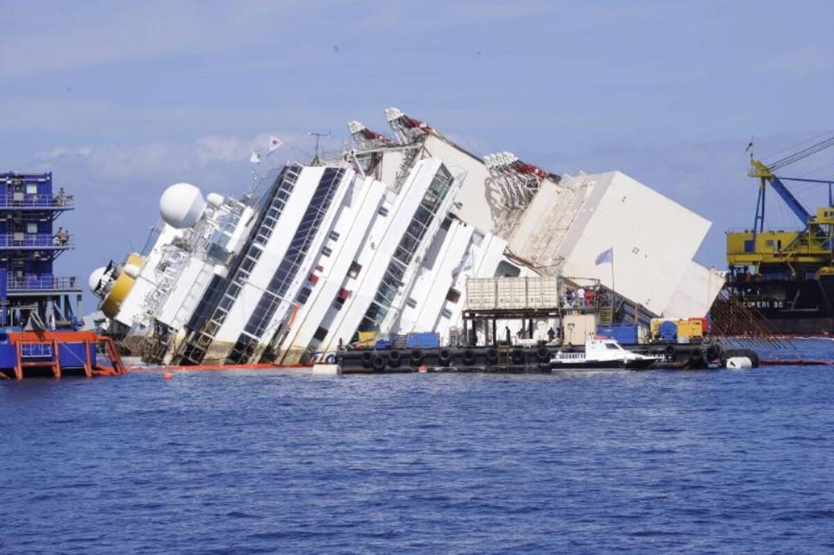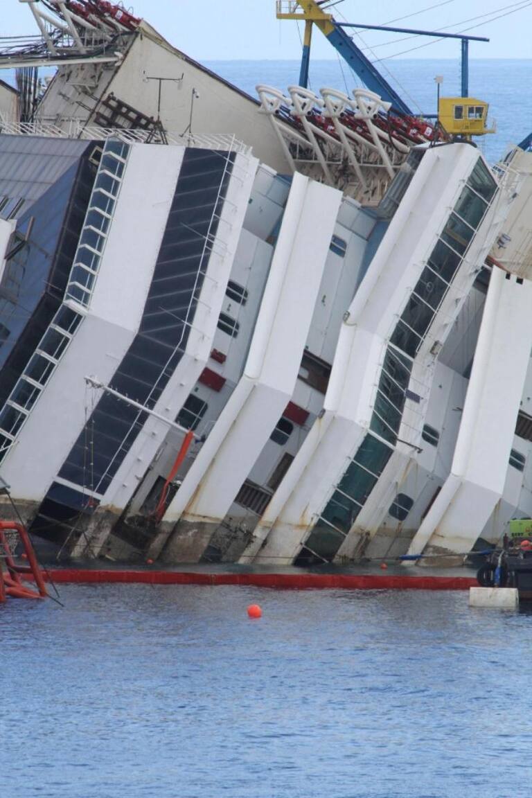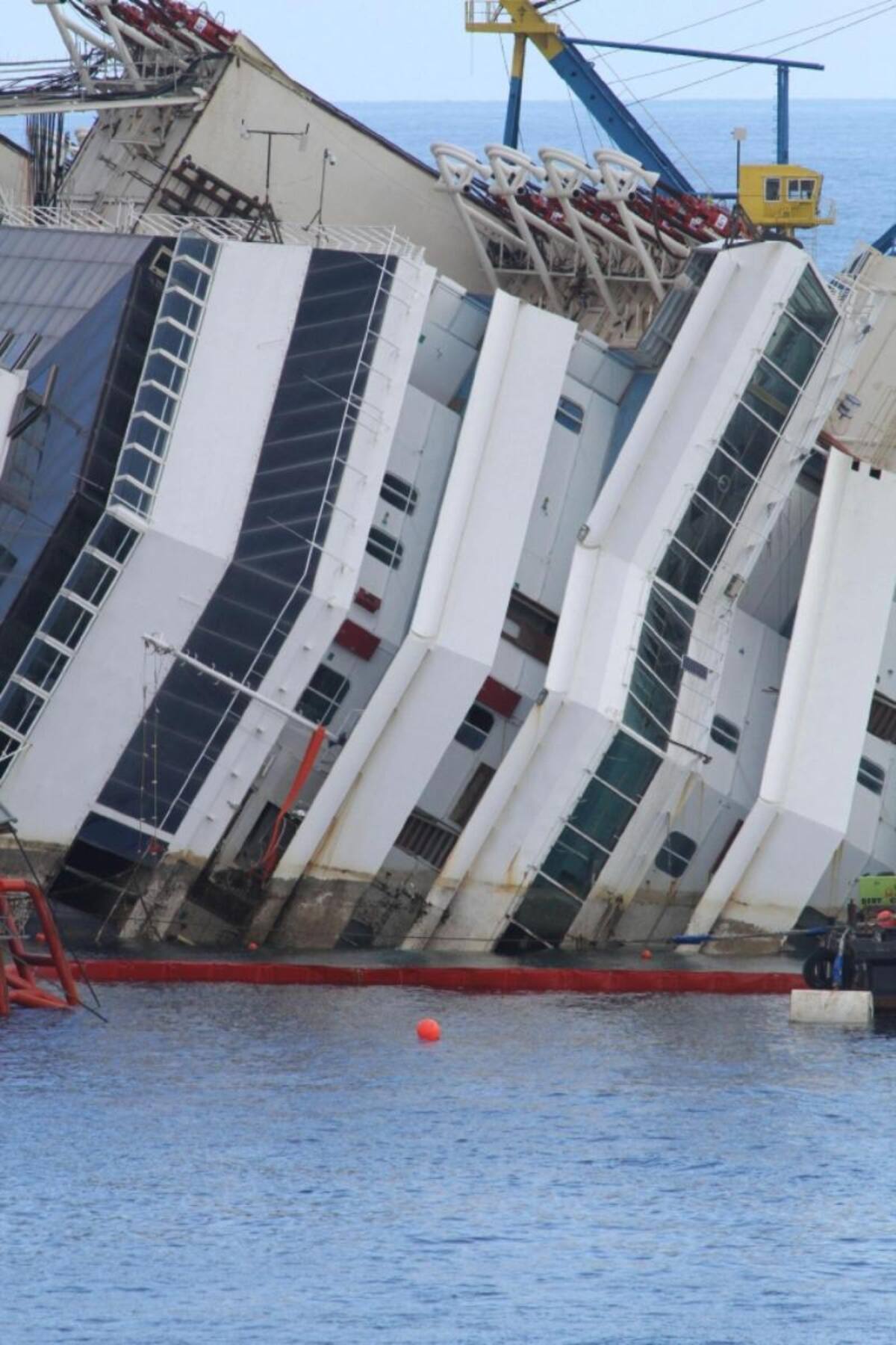Operarios trabajan intentando enderezar el Costa Concordia en la isla de Giglio en Italia