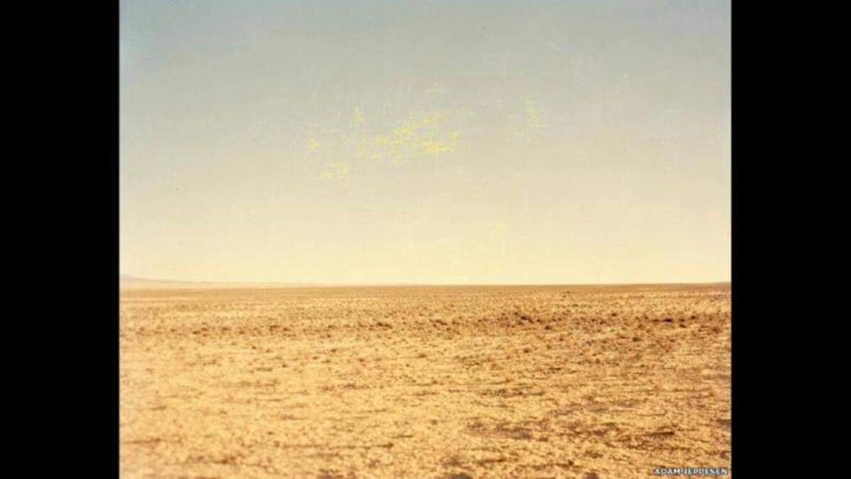 • El trabajo de Burri se presenta junto al de otros fotógrafos contemporáneos como el danés Adam Jeppsen, quien debuta en Reino Unido con un estudio del color en llanuras, titulado "Flatlands Camp Project". Esta fotografía lleva el nombre "BO.Mulato 09.05.10".