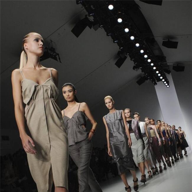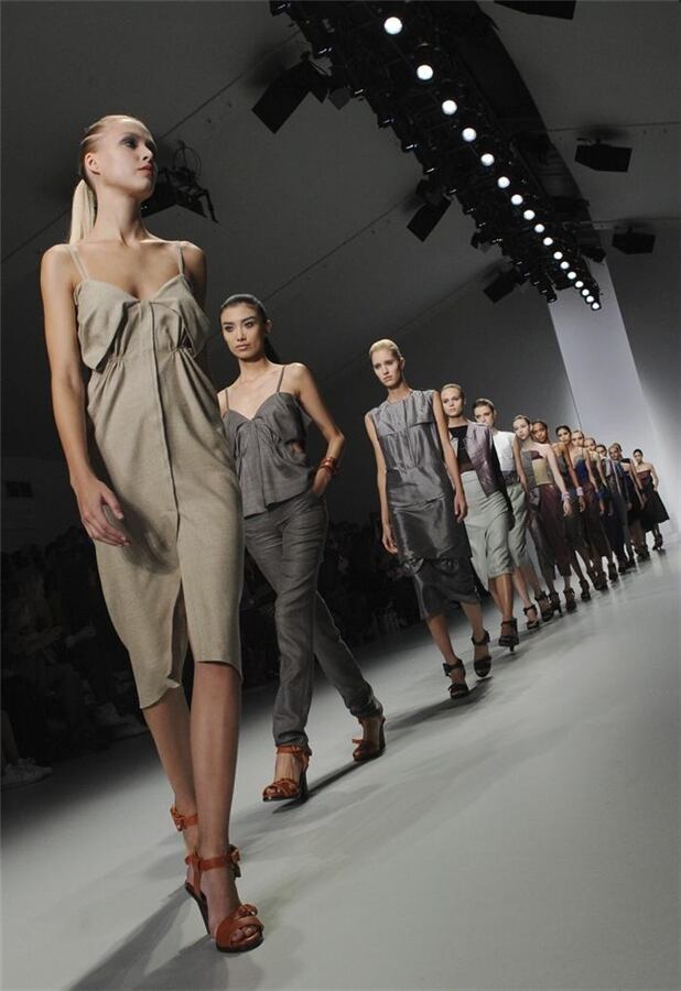 Varias modelos desfilan por la pasarela con creaciones de la colección primavera-verano 2014 del diseñador español Emilio de la Morena, durante la semana de la moda de Londres, Reino Unido. EFE/Andy Rain
