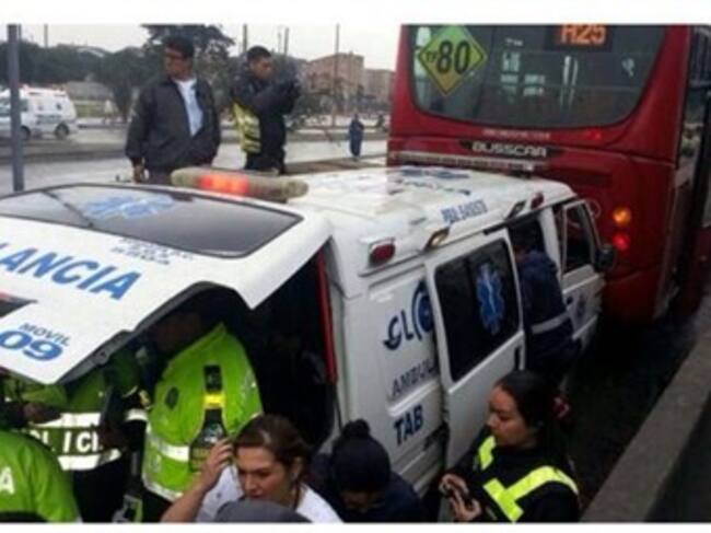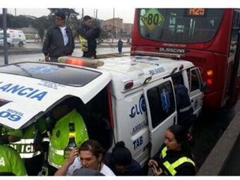 En la Autopista Sur con Carrera 72, sentido Soacha-Bogotá, una ambulancia chocó contra un bus de Transmilenio, dejando dos personas heridas, uno de ellos el paciente que estaba siendo trasladado por la ambulancia