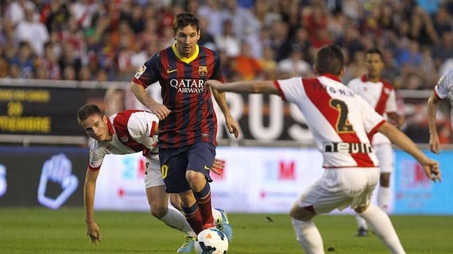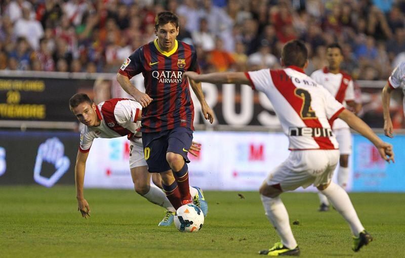 Messi, de 26 años, disputó su primer partido en la Liga española con el Barcelona el 16 de octubre de 2004. Cumple su décima temporada. Aunque no marcó ante Rayo Vallecano, lleva 221 goles ligueros.
