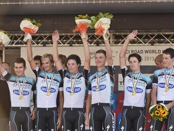 El conjunto belga Omega Pharma Quick Step revalidó el título de campeón del mundo en la modalidad de contrarreloj por equipos, en los Mundiales de Ciclismo de Florencia, al marcar 81 centésimas menos que la escuadra australiana Orica GreenEdge. Los componentes del Omega, con Tony Martin al frente, eran los favoritos para volver al primer peldaño del podio y cumplieron los pronósticos, pero en esta ocasión no lo tuvieron nada fácil y prueba de ello fue la incertidumbre tras los 57,2 kilómetros entre Montecatini Terme y Florencia