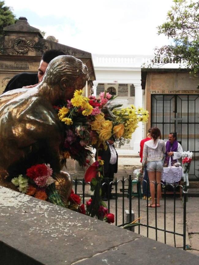 Foto 9 de 38Las personas que visitan la tumba de Leo Kopp mantienen la estatua siempre brillante y cubierta de flores.