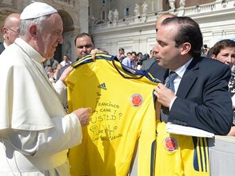 El amor del sumo pontífice por el futbol fue utilizado por el director de la Agencia Colombiana para la Reintegración, Alejandro Eder, como gancho para llamar la atención del papa Francisco y trasmitirle los esfuerzos del gobierno para llegar a un acuerdo con la guerrilla