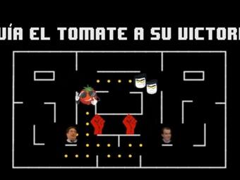 Se trata de 'Tomateman' una réplica del famoso videojuego Pacman. La idea es eliminar figuras como Francisco Santos y Jose Obdulio Gaviria.