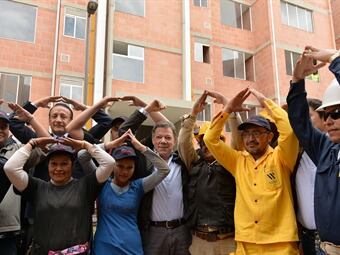 Una de las propietarias le contó al presidente de la República, Juan Manuel Santos que es una persona en situación de desplazamiento del departamento del Tolima, y una vez recibió su balota, paso ante el notario para la entrega de su escritura