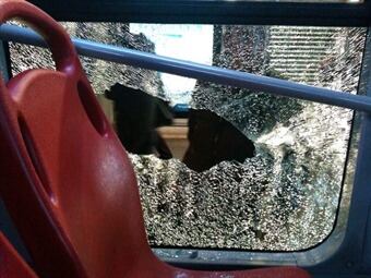 Desde un puente peatonal, un hombre atacó el articulado cuando estaba transitando por la Autopista Norte.