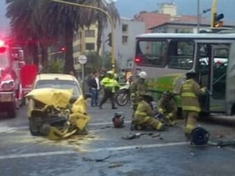 El Cuerpo Oficial de Bomberos de Bogotá reportó que una buseta se estrelló con un taxi en la Calle 58 con Carrera 18.