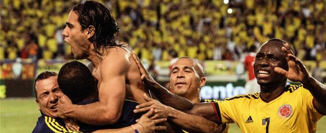 Eufórica celebración de Falcao tras la clasificación a Brasil 2014