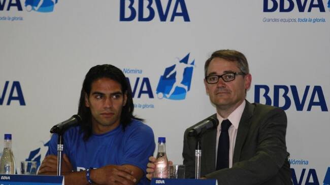 El delantero colombiano renovó su contrato como imagen del BBVA y presentó el torneo de fútbol empresarial.