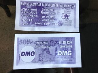 Reaparece DMG en Cartagena a través de billetes que invitan a invertir