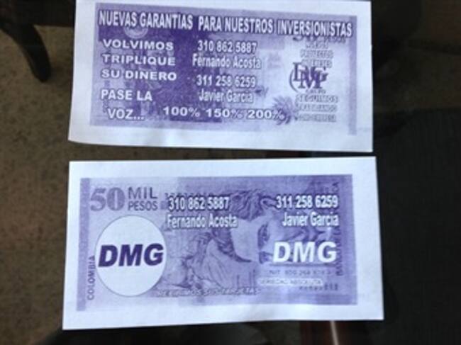Al parecer la comercializadora DMG se estaría reactivando con la circulación en Cartagena de unos volantes que semejan billetes y que tienen impresos números telefónicos y nombres de los encargados de captar los recursos para quienes quieran invertir en la comercializadora“Nuevas garantías para nuestros inversionistas, volvimos, triplique su dinero, pase la voz. Nuevos proyectos de interés. Grupo DMG seguimos trabajando como empresa, recibimos sus tarjetas, seriedad absoluta"
