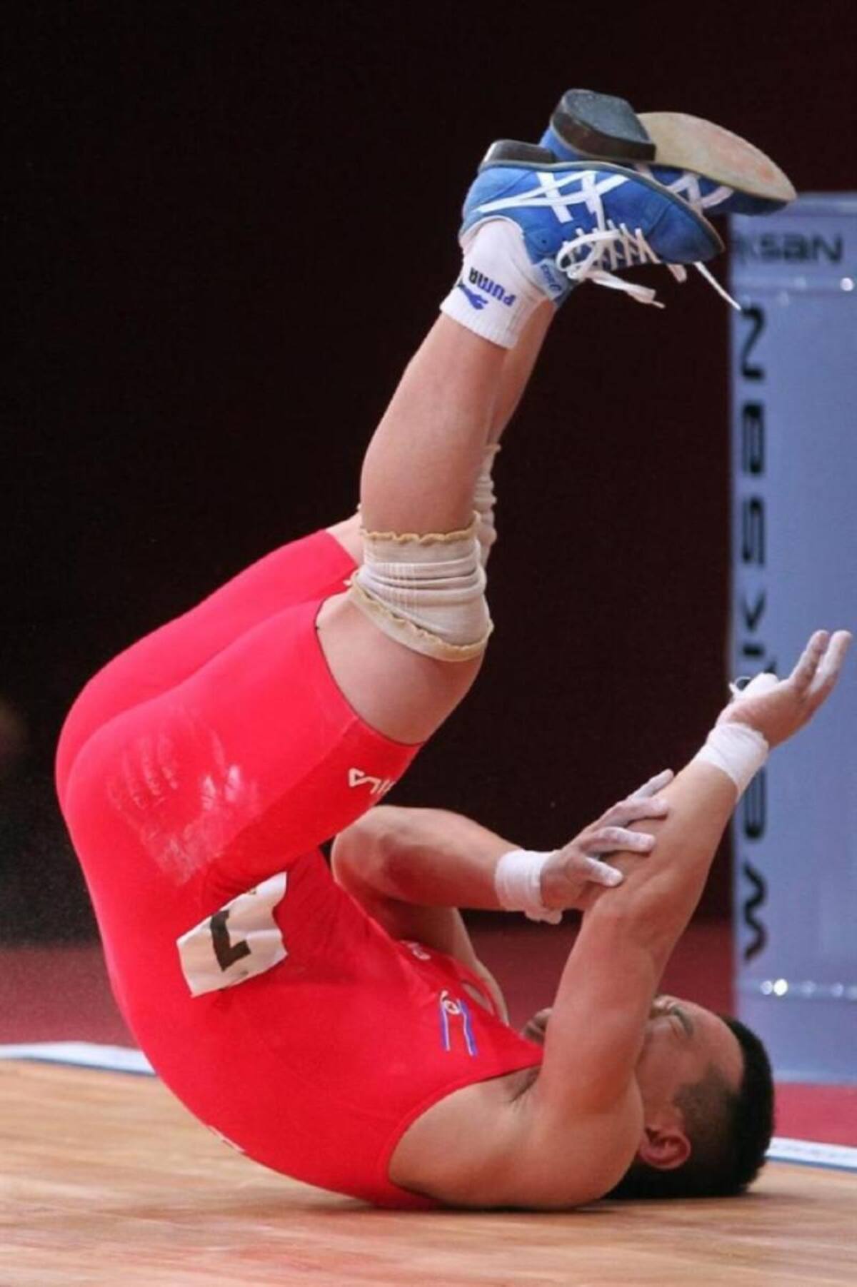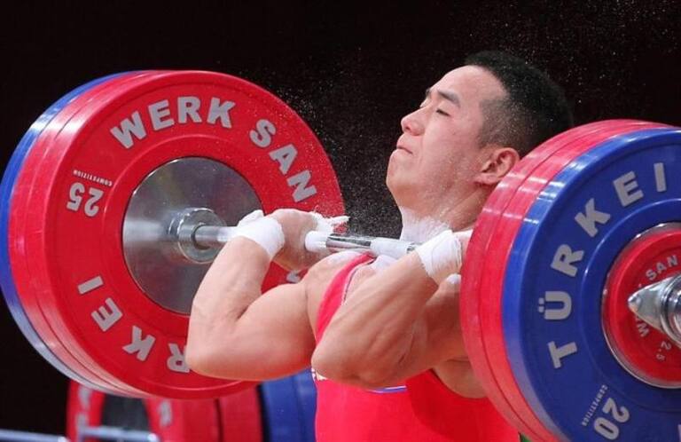 El pesista asiático dominó la categoría de los 56 kilogramos, donde el colombiano Carlos Berna terminó noveno al no poder completar ni un solo intento en envión.