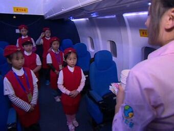 La atracción más popular para las niñas es la oportunidad de vestirse como azafatas. Después de empujar sus pequeñas maletas en una cabina de avión falsa, las pequeñas aprenden a servir comidas con un carrito miniatura