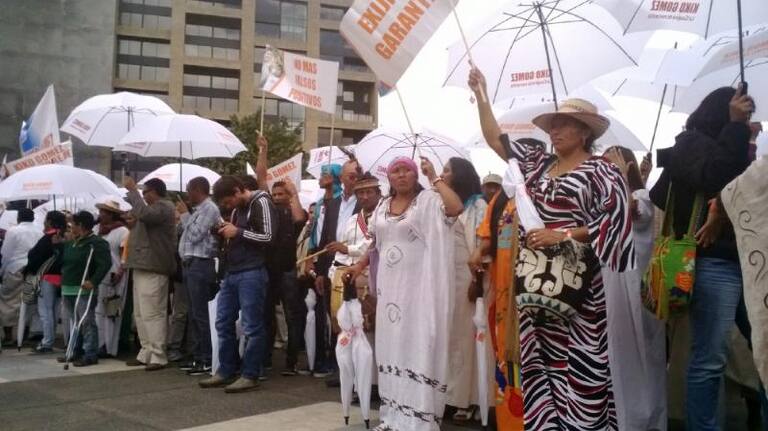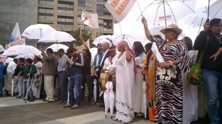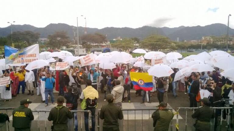 Con arengas, pancartas y sombrillas los simpatizantes exigen garantías en el proceso.