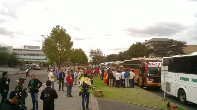 En siete buses de servicio público llegaron más de 250 simpatizantes del capturado gobernador de La Guajira, Juan Francisco “Kiko” Gómez, al búnker de la Fiscalía