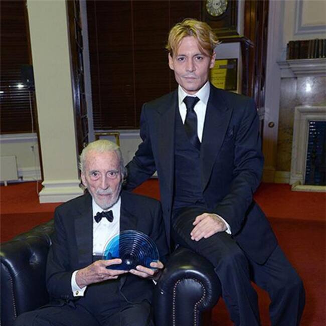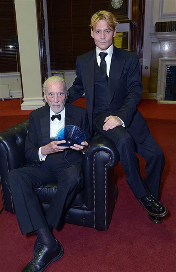 Johnny Depp hizo una aparición especial en el Festival de Cine de Londres para entregar al veterano Christopher Lee el premio que reconocía su vasto legado en la industria del cine. Fot: BANG
