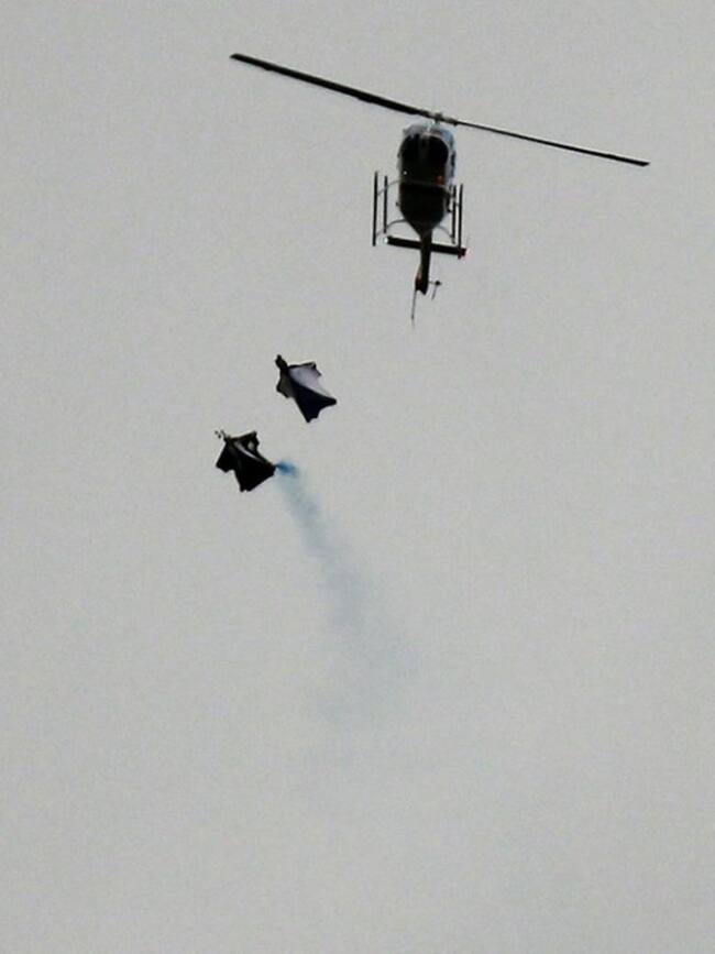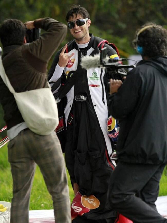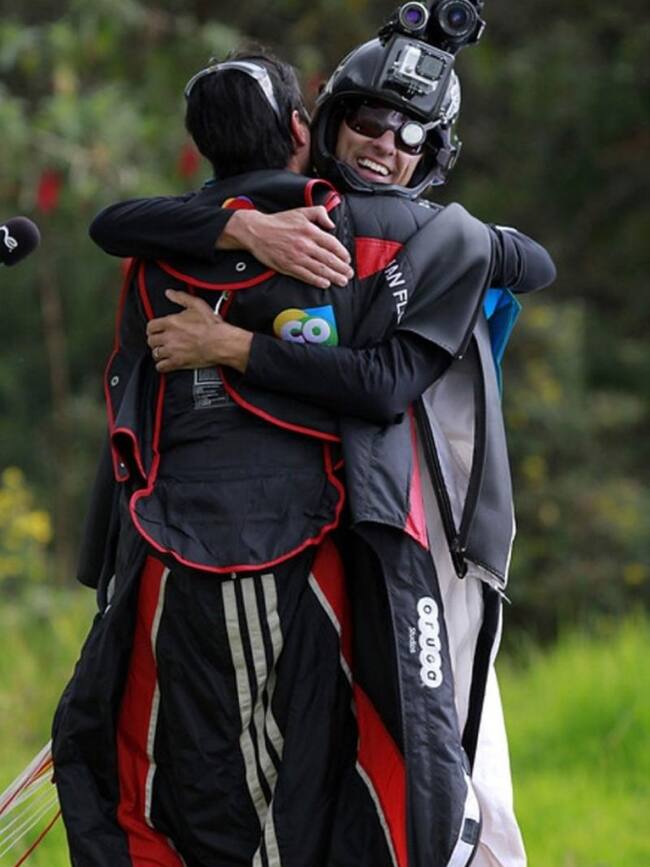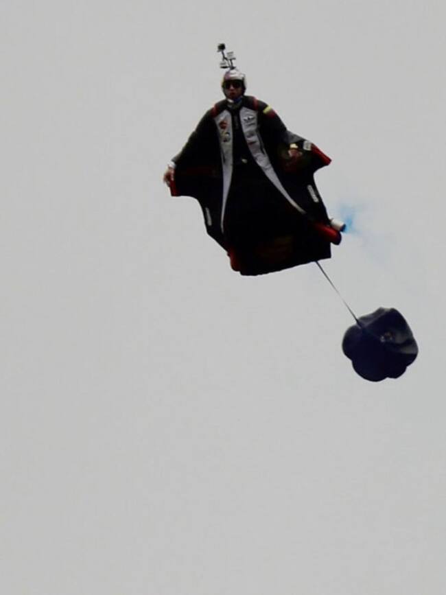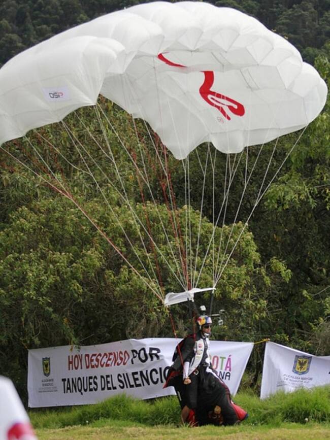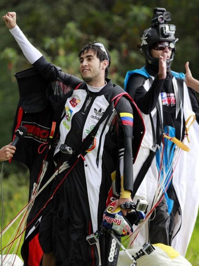 El cielo bogotano fue testigo del sobrevuelo a 200 Kilómetros por hora, del campeón del mundo en traje de alas.