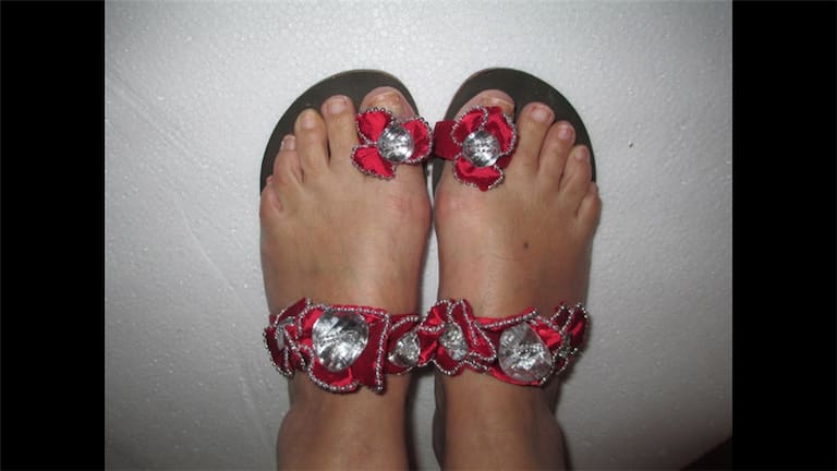 • “Piedras preciosas, así son los zapatos/sandalias. Son mi hobby y tengo muuuuuuuuuchos”, nos cuenta Ester Shipman.
