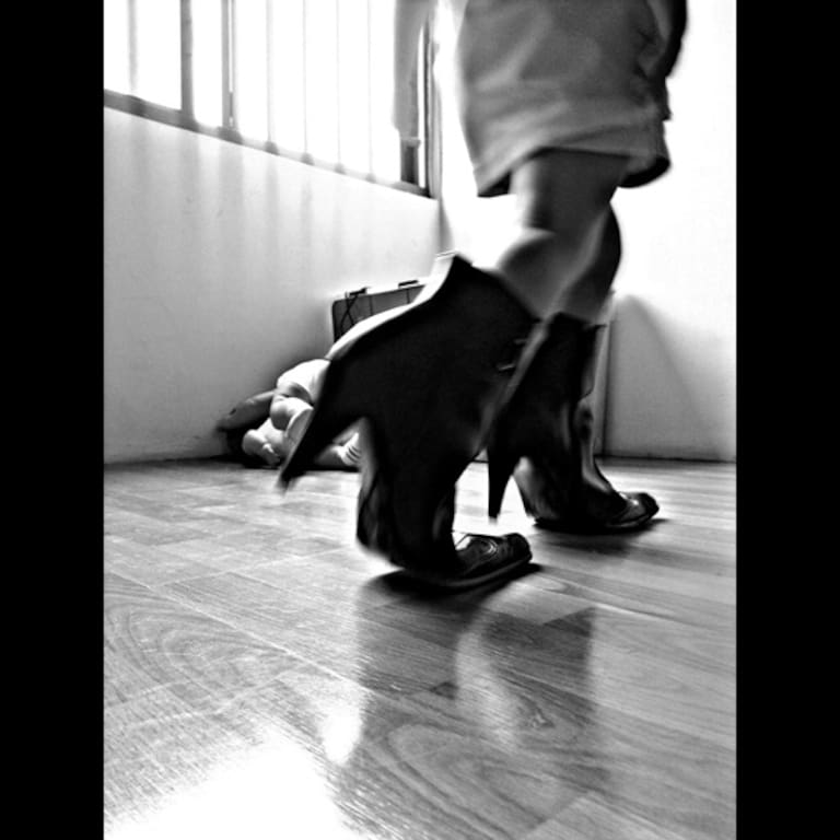 • En esta foto de Juan A. Schamun vemos “las piernas y zapatos de una mujer, que se encontraba descansando cerca de los escalones de una vivienda”.
