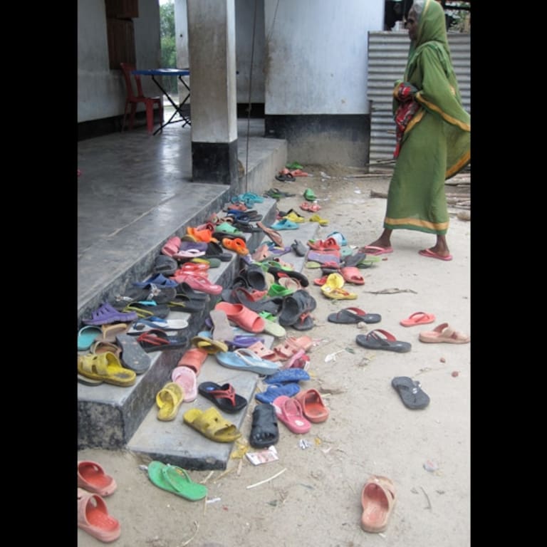 • “Fuera de una escuela primaria del pueblo, en Bangladesh”. Por Chris MacLeod.