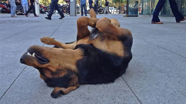 Yamil Hussein: "Con frecuencia en las calles de Santiago de Chile, encontramos perros que no tienen un hogar y hacen su vida en las calles. En este caso se ve a uno descansado, mientras todos trabajan en el centro neurálgico de negocios la capital de Chile".