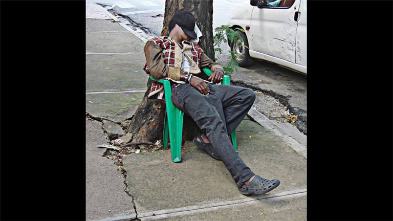 "Estaba yo paseando por este barrio tranquilo de Santo Domingo, cuando me encontré con este cobrador de autobús profundamente dormido debajo de un caobo, y sin pensarlo dos veces le tomé la foto". Foto: Faustino Pérez.