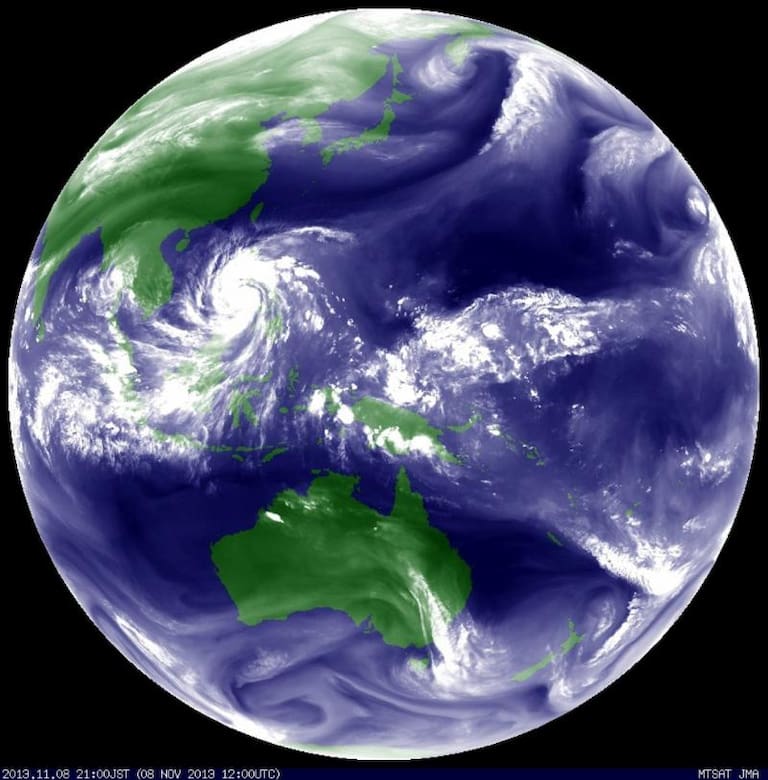 Fotografía de satélite facilitada por la Agencia Meteorológica de Japón que muestra al tifón Haiyan en Filipinas